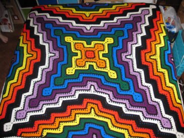 Bright, cheerful, and full of color, this Rainbow Ripple Blanket is a joyful project for …